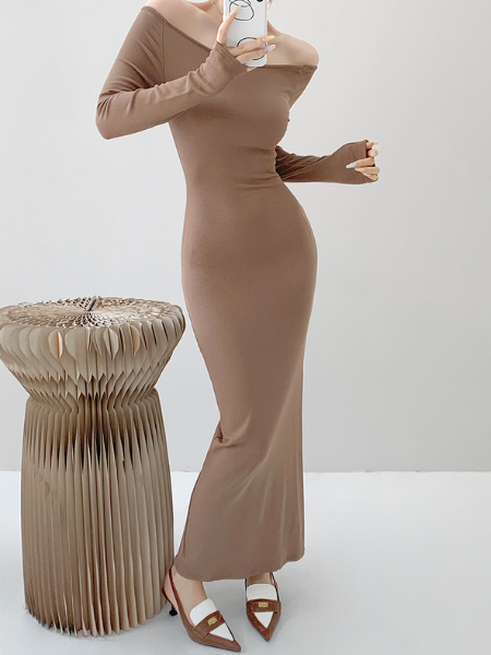 off shoulder long sleeve fit long dress